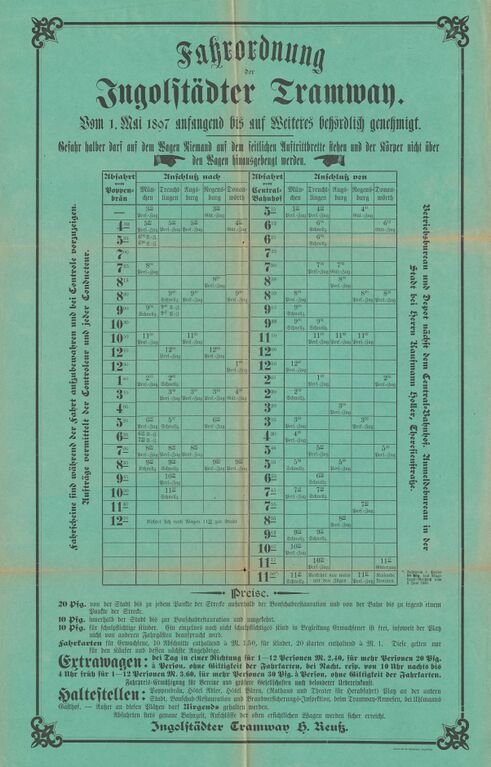 Fahrordnung der Ingolstädter Tramway, 1897 (A XIII 51g, Zentrum Stadtgeschichte Ingolstadt)