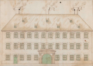 Das Entstehungsjahr 1687 konnte über die dendrochronologische Untersuchung des Dachgebälks ermittelt werden. Zuvor hatten sich nur die beiden östlichen Hausstellen im Besitz des „Bartholomäums“ befunden, deren damaligen Zustand man dem Sandtner Modell entnehmen kann. Dasselbe gilt für die westliche Hausstelle, die erst Anfang des 18. Jahrhunderts an das Institut überging. In der zweiten Bauphase, die ebenso über die Untersuchung des Dachstuhles bestimmt werden konnte, wurde der bestehende Bau um vier Fensterachsen nach Westen und einen Anbau nach Norden ergänzt. Lediglich das Kellergeschoss gab die mittelalterliche Baustruktur noch preis.[6] Das Gebäude erhielt einen Mittelflur zum westlichen „Neubau“, der auch den Nordtrakt mittig durchzog. Hinzu kamen ein Vier-Pfeiler-Treppenhaus und ein Abgang zum Keller. Die Treppe wurde vergrößert, weshalb der Haupteingang verlegt werden musste.[7]