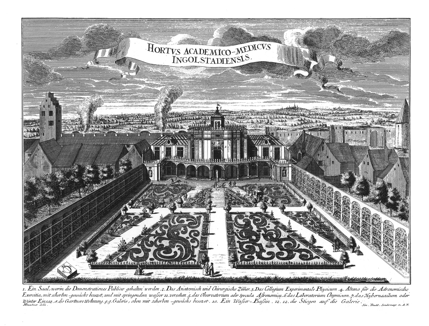 Anatomie und Botanischer Garten 1723 (GS II/135, Zentrum Stadtgeschichte Ingolstadt/Stadtarchiv, Kupferstich von Simon Thaddäus Sondermeyr)