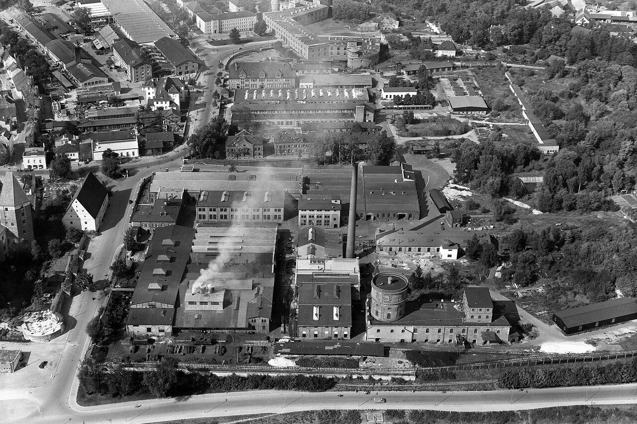 Das Kavalier Dalwigk mit Wasserturm und Transformatorenhaus im Vordergrund