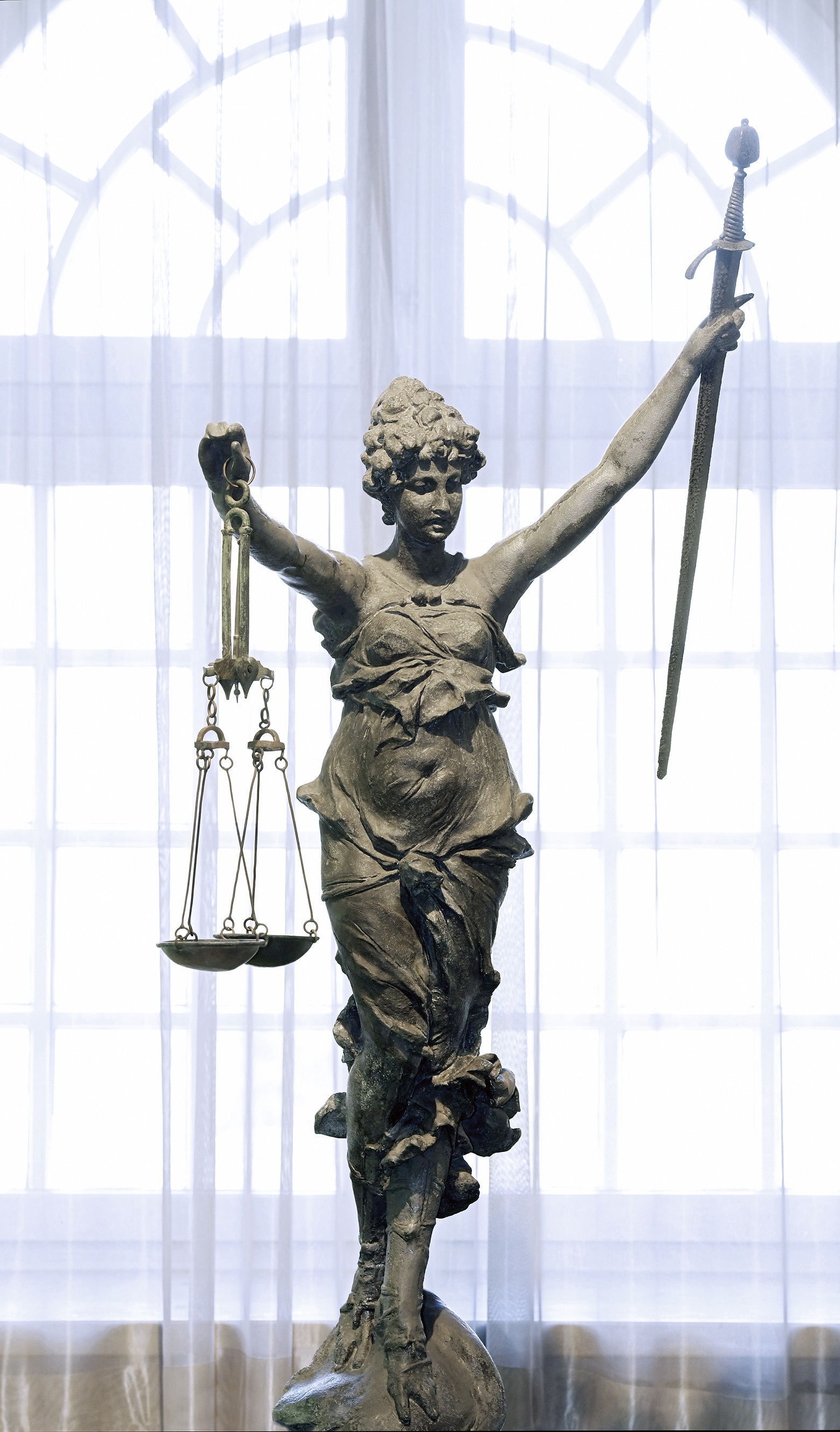 Originalfigur der Justitia im Stadtmuseum Ingolstadt 2024 (Zentrum Stadtgeschichte Ingolstadt, Foto von Ulli Rössle)