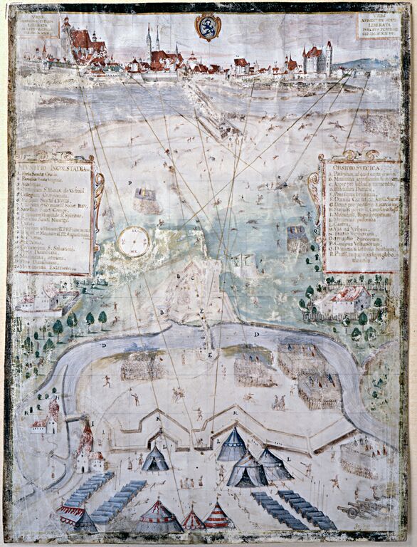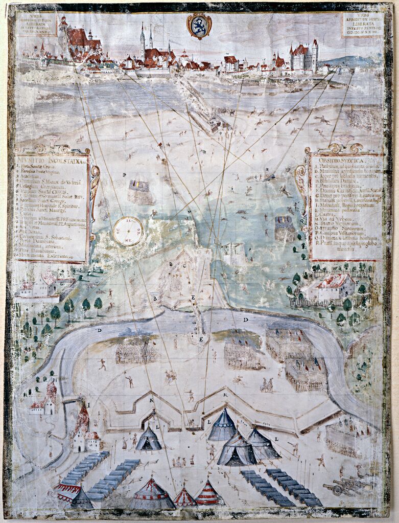 Das Schwedenlager im Aquarell von Windberger 1632, Ingolstadt im Hintergrund Foto Stadtarchiv