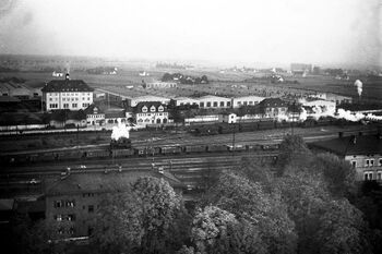 Während des Ersten Weltkrieges war Ingolstadt ein wichtiger Baustein in der Rüstungsindustrie. Dies sowie die günstige Lage und die Einbindung in das Schienennetz sorgten dafür, dass die Stadt zu einem wichtigen Faktor für die Versorgung des Militärs mit Waffen und Munition und den Krankentransport wurde.[11] Ab 1918 gewann auch der Nordbahnhof an Relevanz und wurde in den Jahren von 1920 bis 1924 zu einem Bahnhof erster Klasse umgewandelt, dessen Bedeutung über die militärisch-strategische Dimension hinausging. Nach dem Ersten Weltkrieg sorgte der Versailler Vertrag für ein reduziertes Militärkontingent, was die Stadt in eine wirtschaftlich prekäre Lage brachte. Milderung brachte der Ausbau des Reichsbahnausbesserungswerkes.[12]