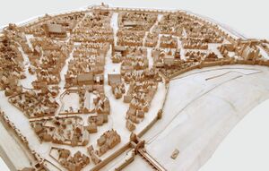 - Örtlichkeiten: Kirche zur Schönen Unserer Lieben Frau, Neues Schloss (genannt als Schloß, neue vest oder Hof), Hohe Schule (genannt als Universität) und Rathaus (genannt als Haus oder Ratsstube)
